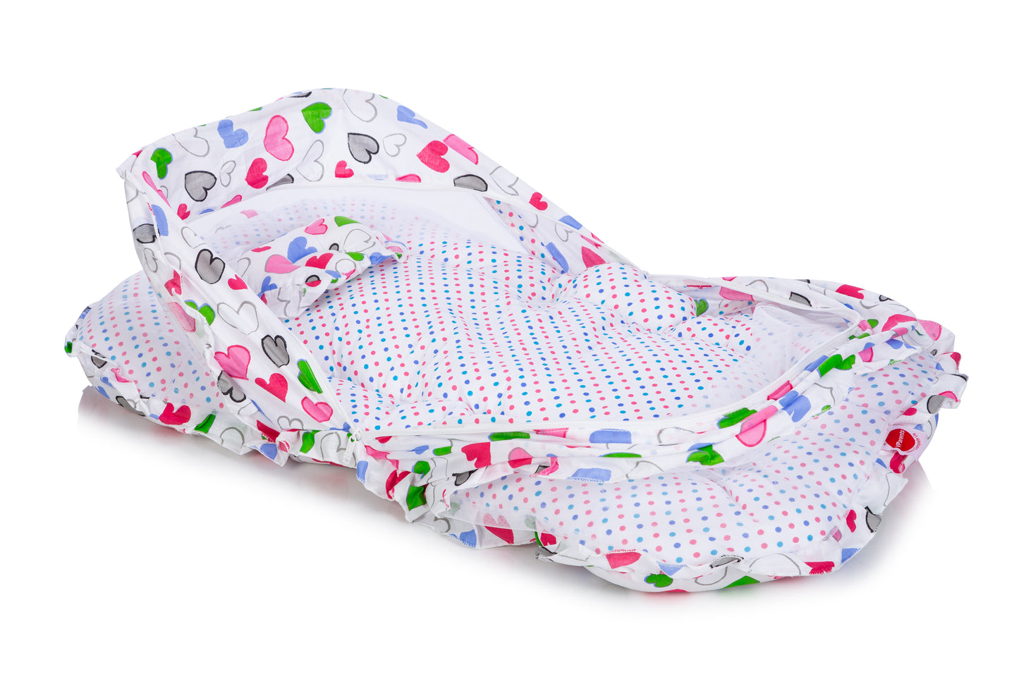 2,Material: Cotton, Washable & Reusable,Durable Size: 0-18 Months,Package Contain :- One bedding set with attached mosquito net and pillow
