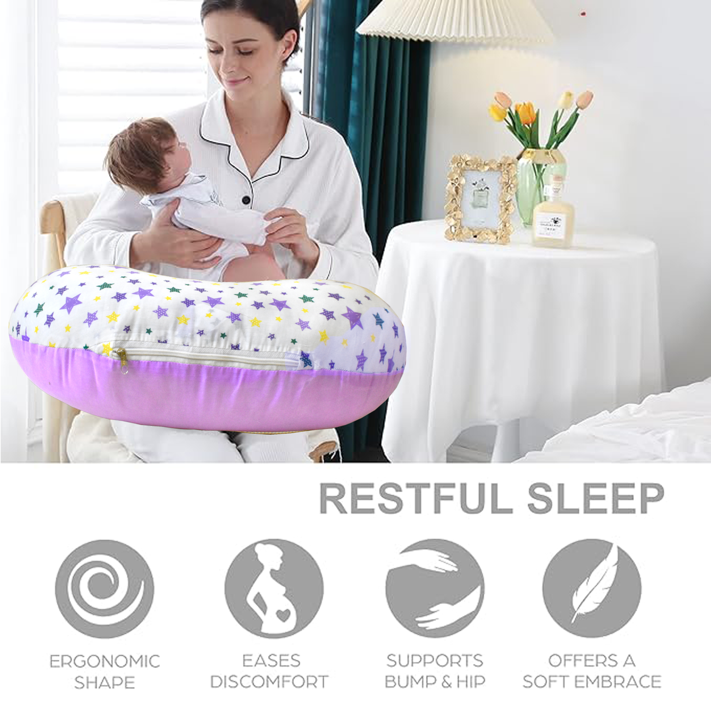 Multifunctional Pregnancy & Nursing Pillow: With this multifunctional nursing pillow you can support your abdomen and reduce pain or discomfort in the back or hips. This is a wonderful pregnancy pillow for women to sleep. With this breastfeeding & bottle pillow, lifting baby to a more ergonomic position, our moms no longer bend and can easier breastfeeding or bottle feeding with a straight back, taking pressure off your shoulders and neck, making feeding more relaxing.